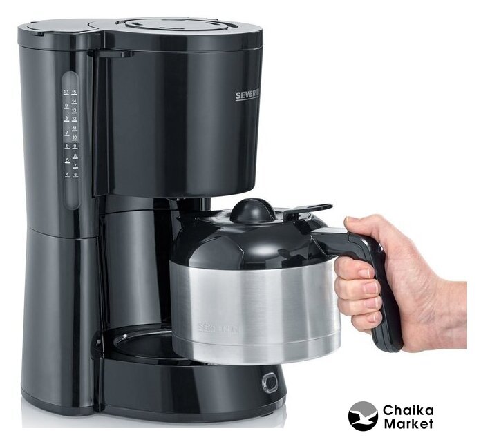 капельная кофеварка, 1000 Вт, корпус металл/пластик, используемый кофе: молотый, цвет нержавеющая сталь/черный
