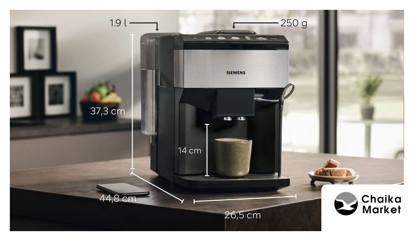 кофемашина, 1450 Вт, корпус пластик, капучинатор автоматический, используемый кофе: молотый/зерновой, цвет серебристый/черный