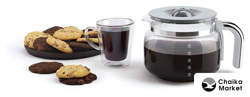 капельная кофеварка, 1800 Вт, корпус пластик, используемый кофе: молотый, цвет серебристый