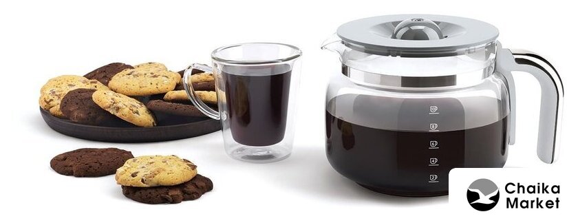 капельная кофеварка, 1800 Вт, корпус пластик, используемый кофе: молотый, цвет серебристый
