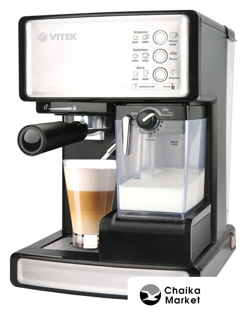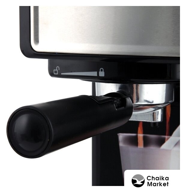 рожковая помповая кофеварка, 1500 Вт, корпус металл/пластик, капучинатор автоматический, используемый кофе: молотый, цвет нержавеющая сталь/черный