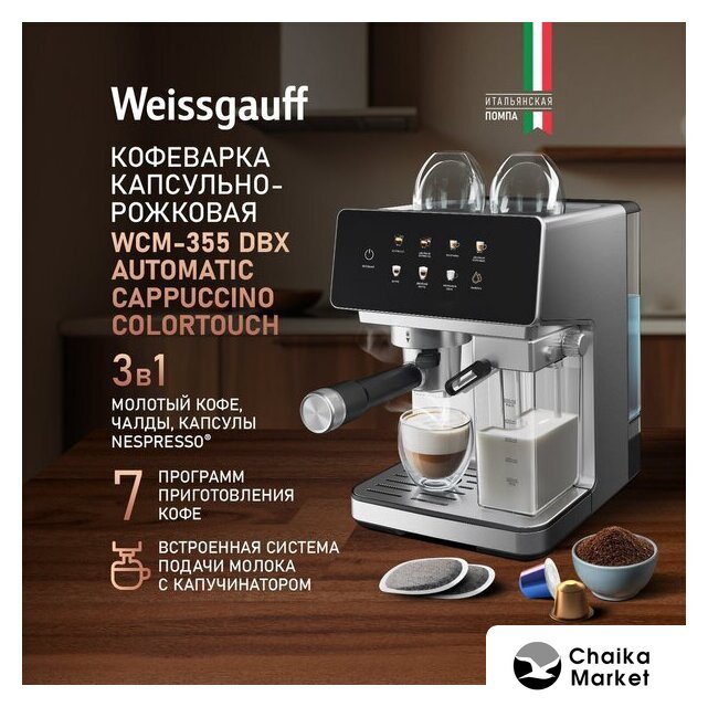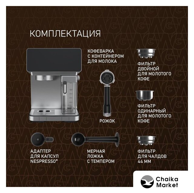 Тип | рожковая кофеварка, капсульная кофеварка, чалдовая кофеварка |