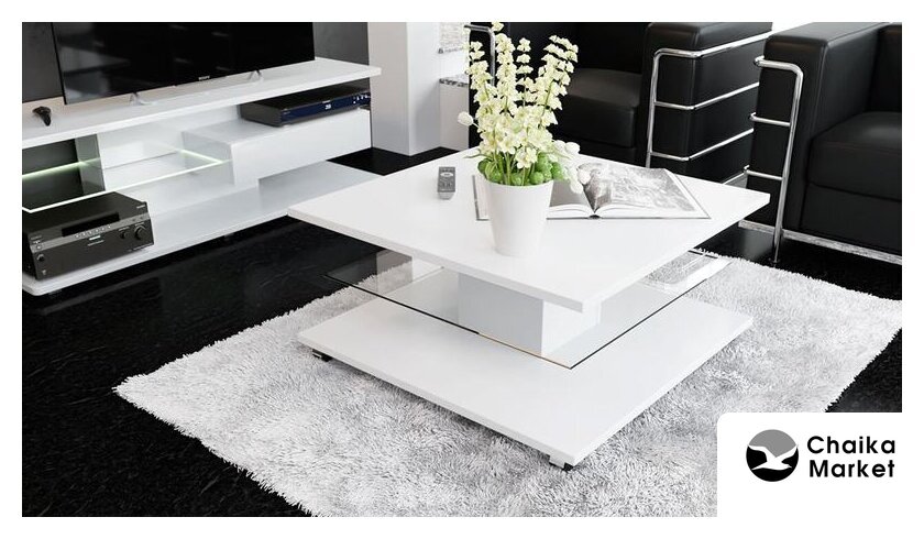 журнальный столик, 1000x630 мм, высота 350 мм, материал: массив дерева (столешница), дерево (опоры), белый