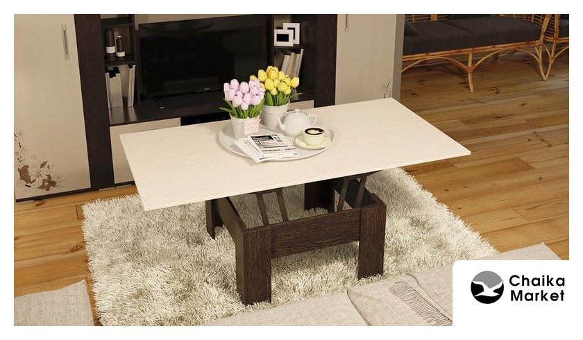 стол-трансформер, с колесами, 850x550 мм, высота 575 мм, в разложенном виде 1102x850x709 мм, материал: МДФ (столешница), окрашенная сталь (опоры), бежевый