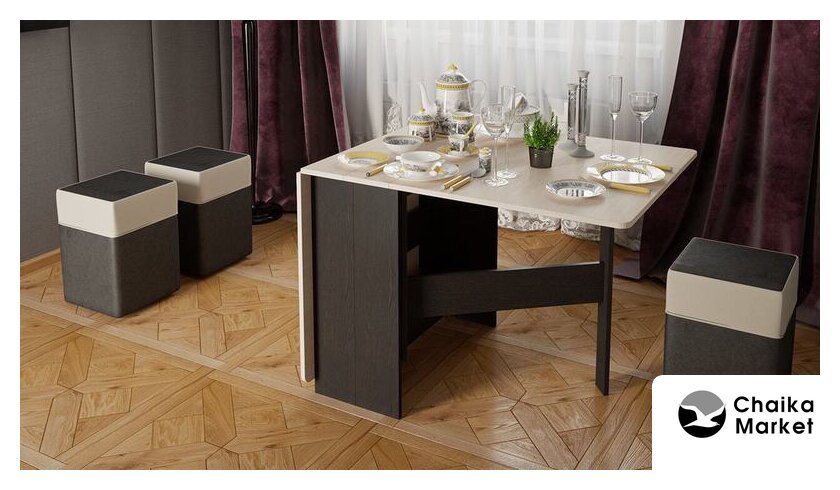 журнальный столик, 550x550 мм, высота 500 мм, материал: МДФ/стекло (столешница), окрашенная сталь (опоры), черный