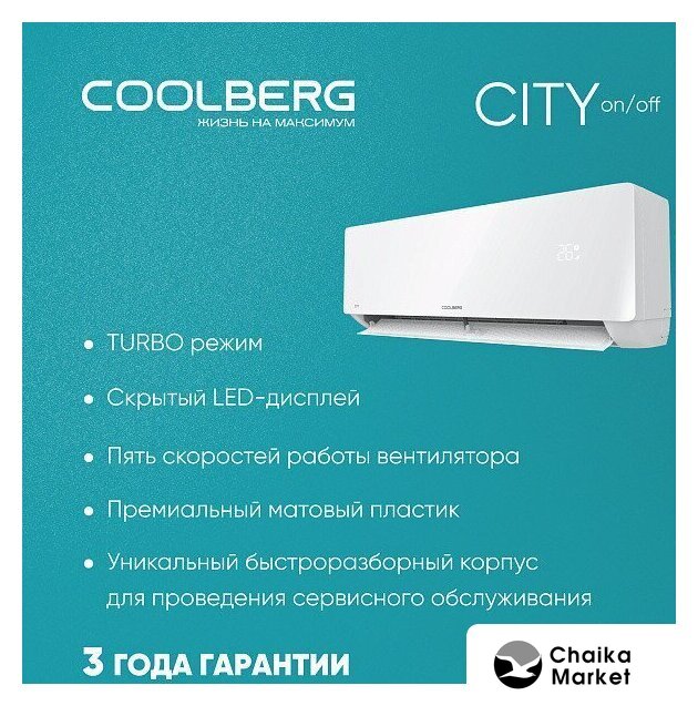 сплит-система, инвертор, мощность охлаждения 2.18 кВт, мощность обогрева 2.42 кВт, обслуживаемая площадь 22 м², шум 21-33 дБ, Wi-Fi: нет, ионизатор