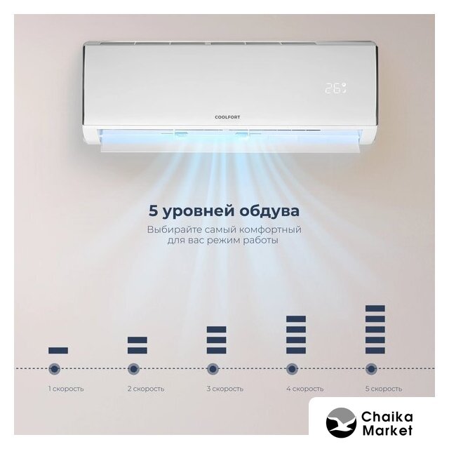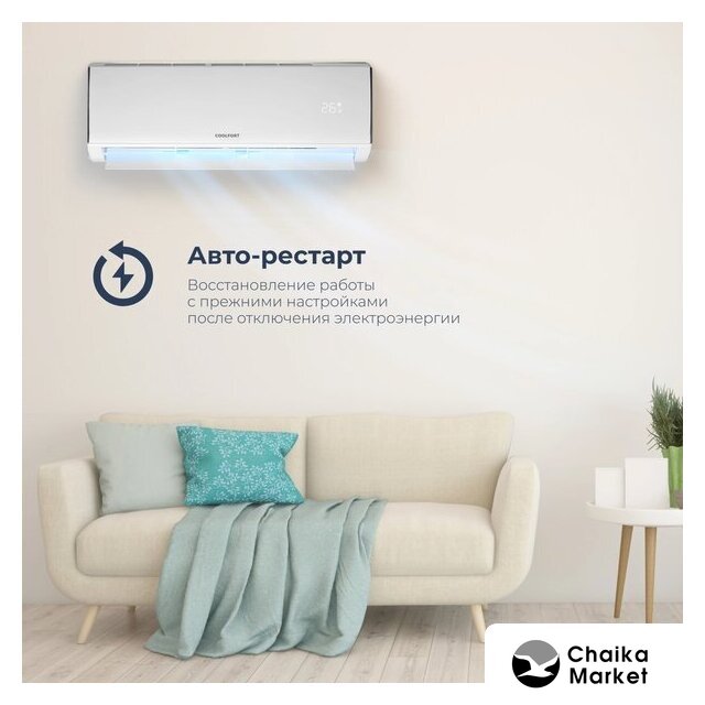 сплит-система, мощность охлаждения 5.1 кВт, мощность обогрева 5.05 кВт, обслуживаемая площадь 50 м², шум 35-49 дБ, Wi-Fi: нет