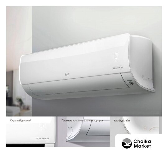 сплит-система, инвертор, мощность охлаждения 6.16 кВт, мощность обогрева 6.2 кВт, шум 34-47 дБ