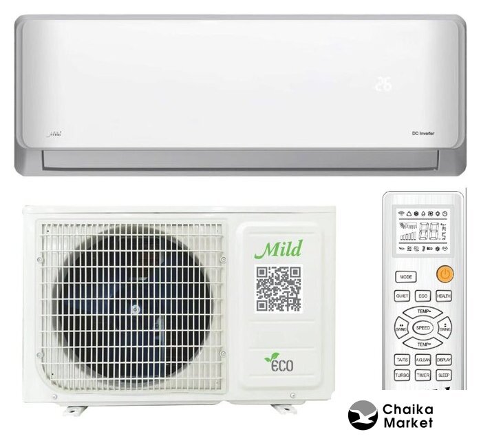 сплит-система, инвертор, мощность охлаждения 2.2 кВт, мощность обогрева 2.29 кВт, обслуживаемая площадь 22 м², шум 26-40 дБ, Wi-Fi: поддерживается, модуль приобретается отдельно