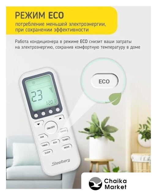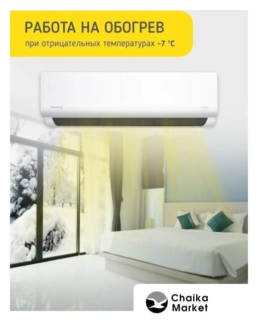 сплит-система, инвертор, мощность охлаждения 2.1 кВт, мощность обогрева 2.2 кВт, обслуживаемая площадь 20 м², шум 24-34 дБ, Wi-Fi: нет, обеззараживание ультрафиолетом