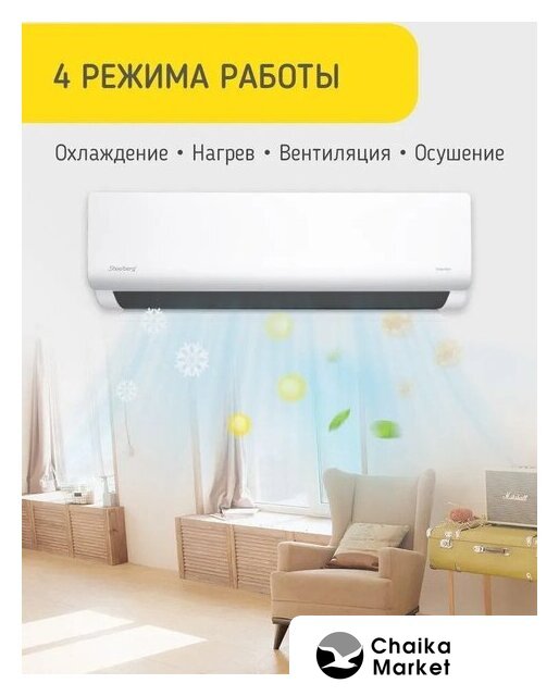 сплит-система, мощность охлаждения 3.5 кВт, мощность обогрева 3.7 кВт, обслуживаемая площадь 35 м², шум 26 дБ, Wi-Fi: нет