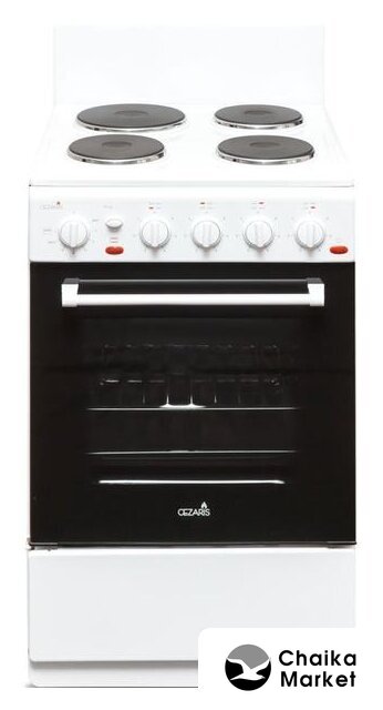 электрическая панель + электрический духовой шкаф, поверхность: эмалированная сталь, щиток, управление механическое, без таймера, размеры (ШхГхВ): 50x58.5x85 см, цвет белый