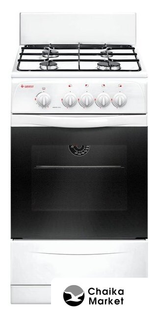 газовая панель + газовый духовой шкаф, поверхность: эмалированная сталь, щиток, энергопотребление A, управление механическое, без таймера, размеры (ШхГхВ): 50x58.5x85 см, цвет белый