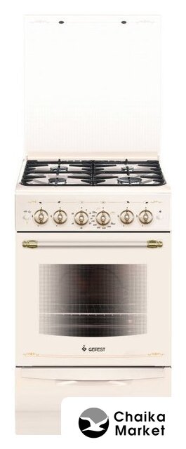 газовая панель + газовый духовой шкаф, поверхность: эмалированная сталь, крышка из эмалированной стали, управление механическое, таймер механический, размеры (ШхГхВ): 50x58.5x85 см, цвет кремовый