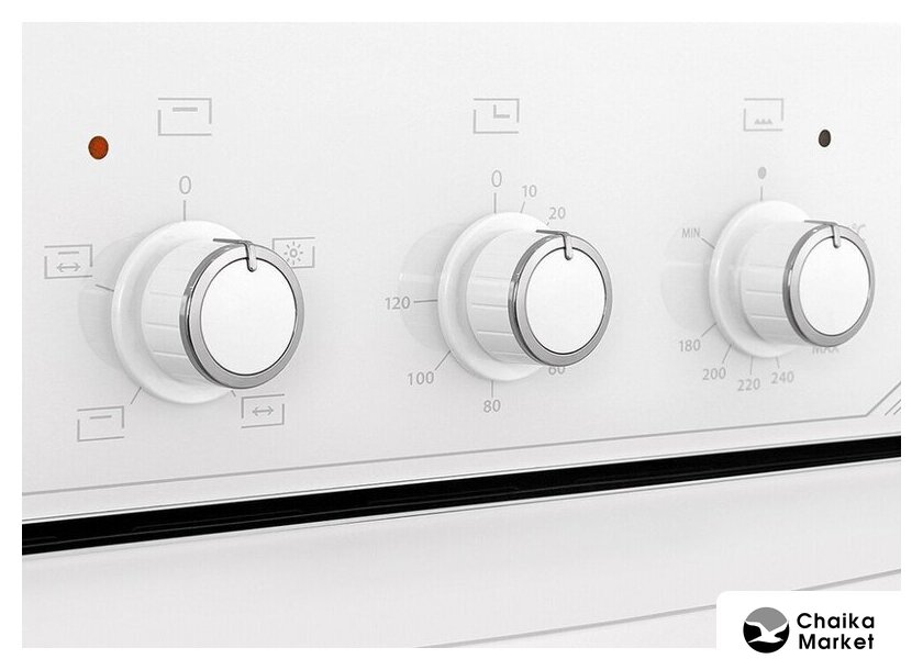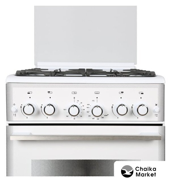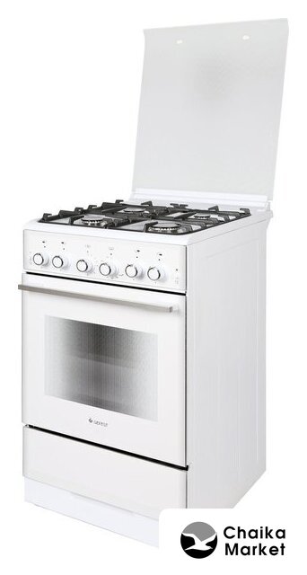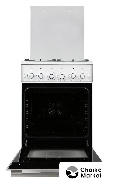 газовая панель + газовый духовой шкаф, газ-контроль конфорок, поверхность: эмалированная сталь, крышка из закалённого стекла, управление механическое, таймер механический, размеры (ШхГхВ): 60x60x85 см, цвет белый