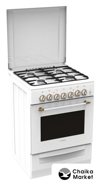 газовая панель + электрический духовой шкаф, поверхность: эмалированная сталь, крышка из закалённого стекла, энергопотребление A, управление механическое, без таймера, размеры (ШхГхВ): 50x60x85 см, цвет белый