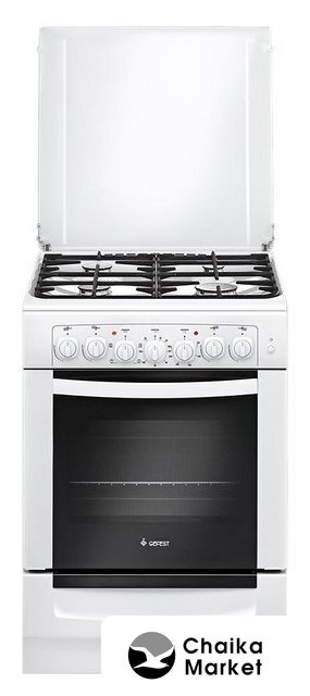 газовая панель + газовый духовой шкаф, поверхность: эмалированная сталь, крышка из закалённого стекла, управление механическое, таймер механический, размеры (ШхГхВ): 60x60x85 см, цвет кремовый