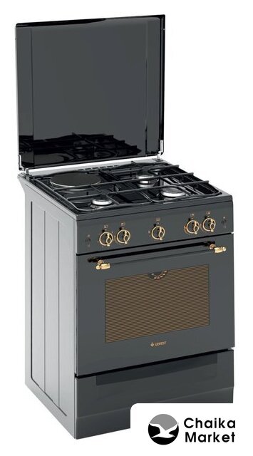 газ + электро панель + электрический духовой шкаф, поверхность: эмалированная сталь, крышка из эмалированной стали, энергопотребление B, управление механическое, таймер механический, размеры (ШхГхВ): 60x60x85 см, цвет белый