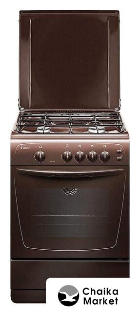 газовая панель + газовый духовой шкаф, поверхность: эмалированная сталь, крышка из эмалированной стали, управление механическое, без таймера, размеры (ШхГхВ): 50x58.5x85 см, цвет коричневый