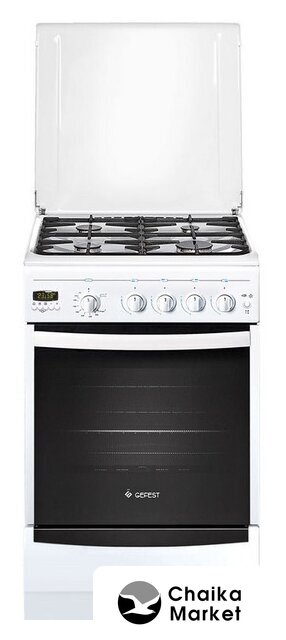 газовая панель + электрический духовой шкаф, газ-контроль конфорок, поверхность: эмалированная сталь, крышка из эмалированной стали, управление электронное, таймер электронный, размеры (ШхГхВ): 60x60x85 см, цвет белый