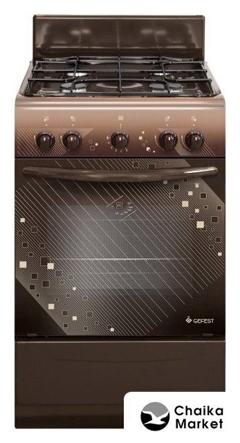 газовая панель + газовый духовой шкаф, поверхность: эмалированная сталь, крышка из эмалированной стали, управление механическое, без таймера, размеры (ШхГхВ): 51x55x85 см, цвет коричневый