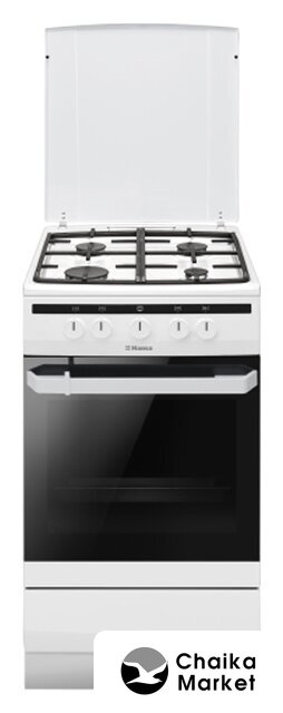 газовая панель + газовый духовой шкаф, поверхность: эмалированная сталь, крышка из эмалированной стали, управление механическое, без таймера, размеры (ШхГхВ): 50x58.5x85 см, цвет белый
