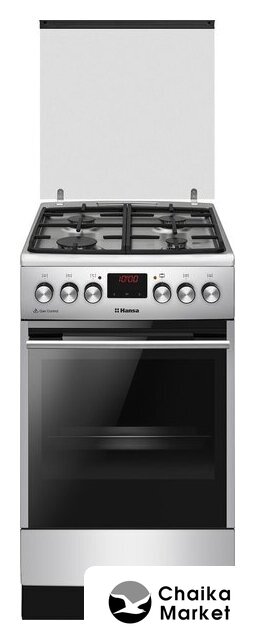 газовая панель + электрический духовой шкаф, газ-контроль конфорок, поверхность: эмалированная сталь, крышка из эмалированной стали, энергопотребление A, управление электронное, таймер электронный, размеры (ШхГхВ): 50x60x85 см, цвет серебристый/черный