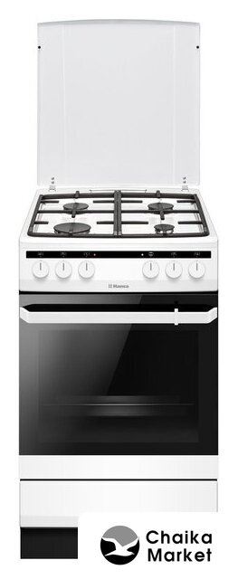 газовая панель + электрический духовой шкаф, поверхность: эмалированная сталь, крышка из закалённого стекла, энергопотребление A, управление механическое, без таймера, размеры (ШхГхВ): 50x60x85 см, цвет белый