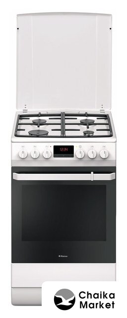 газовая панель + электрический духовой шкаф, газ-контроль конфорок, поверхность: эмалированная сталь, крышка из эмалированной стали, управление механическое, таймер механический, размеры (ШхГхВ): 60x60x85 см, цвет белый