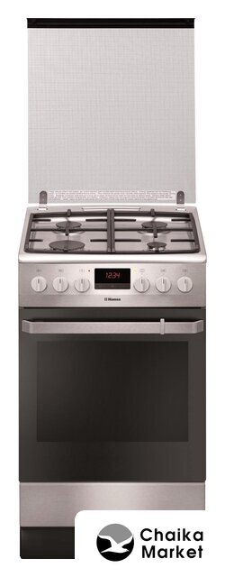 газовая панель + электрический духовой шкаф, газ-контроль конфорок, поверхность: нержавеющая сталь, крышка из закалённого стекла, энергопотребление A, управление электронное, таймер электронный, размеры (ШхГхВ): 50x60x85 см, цвет серебристый