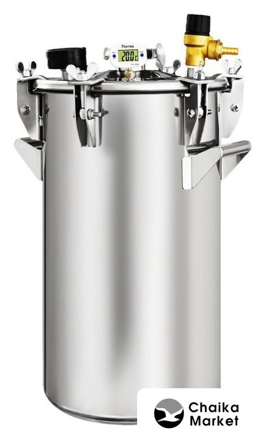 24 л, углеродистая сталь, максимальное давление 0.39 атм, клапан сброса давления/манометр/термометр, диаметр 30 см