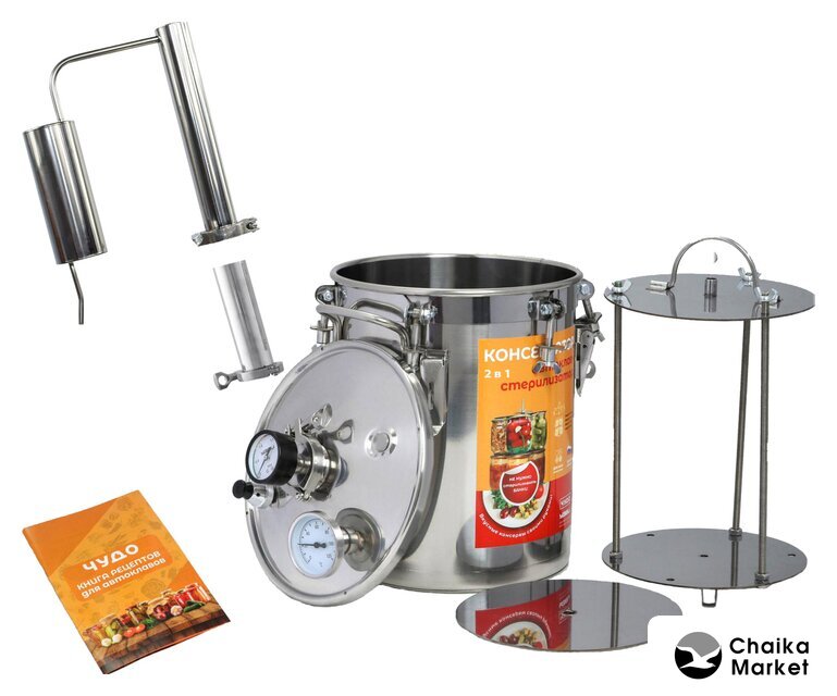 27 л, нержавеющая сталь, клапан сброса давления/манометр/термометр, высота 52.5 см, диаметр 30 см