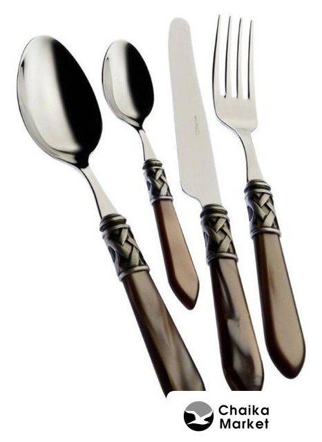 набор столовых приборов, 24 прибора на 6 персон: вилка столовая/ложка столовая/ложка чайная/нож столовый, рабочая часть: нержавеющая сталь, ручка: акрил