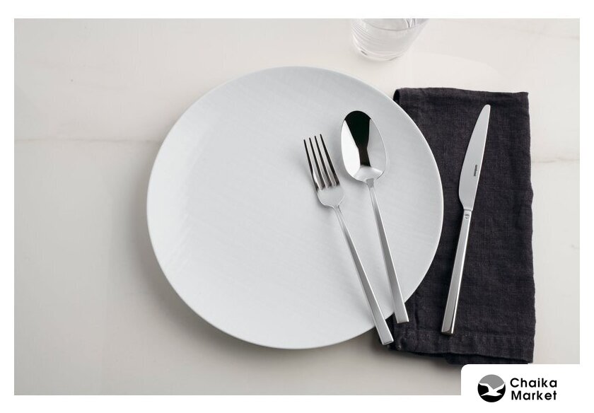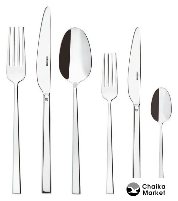 Состав столового набора | вилка столовая, вилка десертная, ложка столовая, ложка чайная, нож столовый, нож десертный |