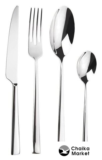 набор столовых приборов, 24 прибора на 6 персон: вилка столовая/ложка столовая/ложка чайная/нож столовый, рабочая часть: нержавеющая сталь, ручка: нержавеющая сталь