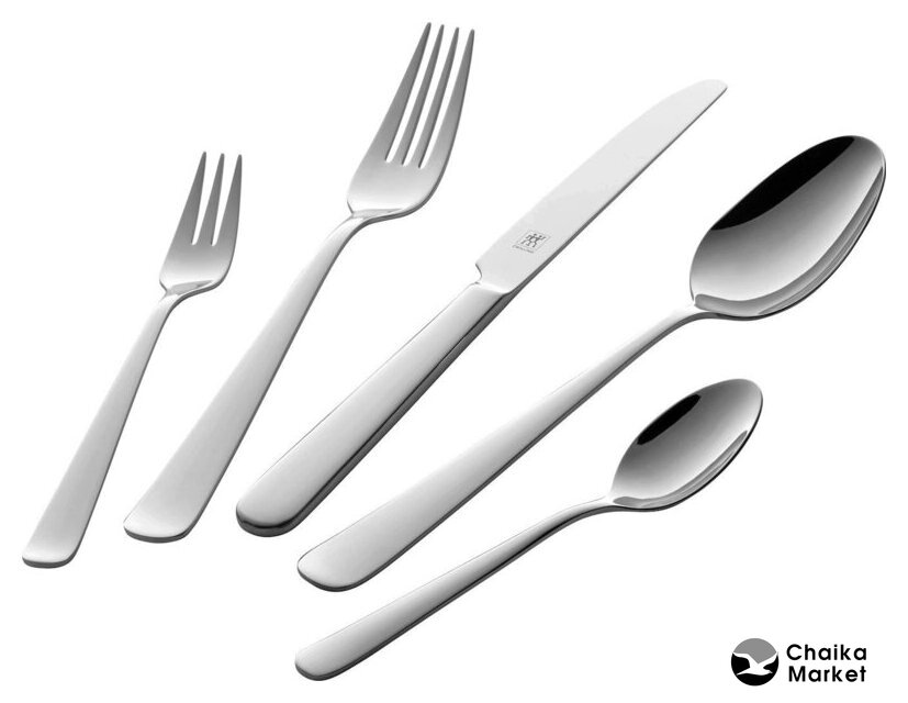Состав столового набора | вилка столовая, вилка десертная, ложка столовая, ложка кофейная, нож столовый |