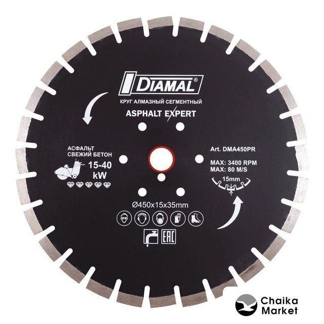 асфальт/асфальтобетон/бетон, 1 в наборе, 3050 об/мин, мокрая резка, 500 мм, посадочный диаметр 35 мм