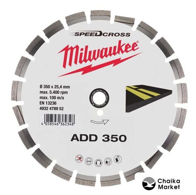 бетон/гранит/камень/кирпич, 1 в наборе, 5400 об/мин, 350 мм, посадочный диаметр 25.4 мм