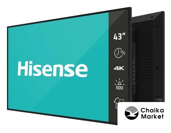 43" 3840x2160, матрица IPS, яркость 500 кд/м2, контраст 1200:1, BT, Wi-Fi,USB