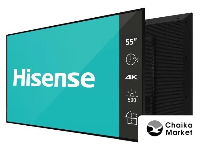 55" 3840x2160, матрица IPS, яркость 400 кд/м2, контраст 1300:1, Wi-Fi,USB
