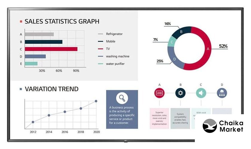 55" 1920x1080, матрица IPS, яркость 500 кд/м2, контраст 1100:1, Wi-Fi,USB