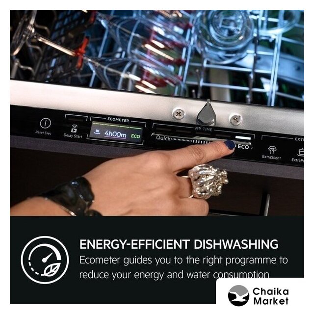 загрузка на 14 комплектов посуды, сенсорное управление, 8 программ, 59.8x55x86.5 см, черный цвет, сушка: Zeolite, индикация на полу: проекция дисплея