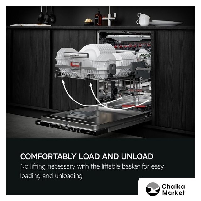 загрузка на 14 комплектов посуды, сенсорное управление, 8 программ, 59.6x55x82 см, черный цвет, сушка: с открыванием дверцы, индикация на полу: проекция дисплея