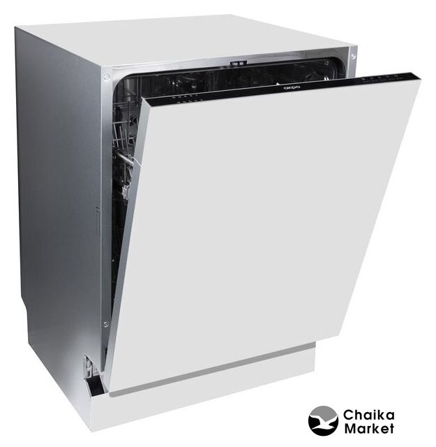 загрузка на 13 комплектов посуды, сенсорное управление, 5 программ, 59.6x55x82 см, черный цвет, сушка: с открыванием дверцы, индикация на полу: нет