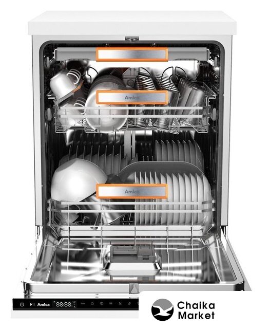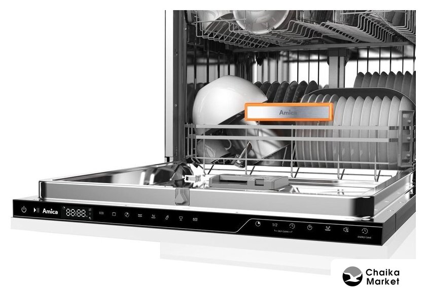 | Дополнительные опции | сокращение времени мойки, дополнительная сушка, усиление интенсивности мойки (гигиеническая мойка), половинная загрузка (экономия воды), программа самоочистки |