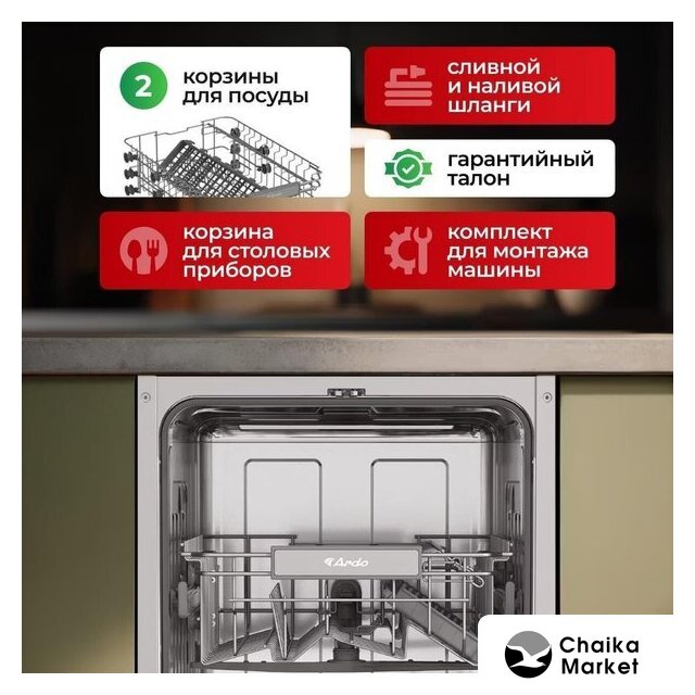 загрузка на 12 комплектов посуды, электронное управление, 5 программ, 59.8x55x82 см, черный цвет, сушка: стандартная (конденсация), индикация на полу: луч