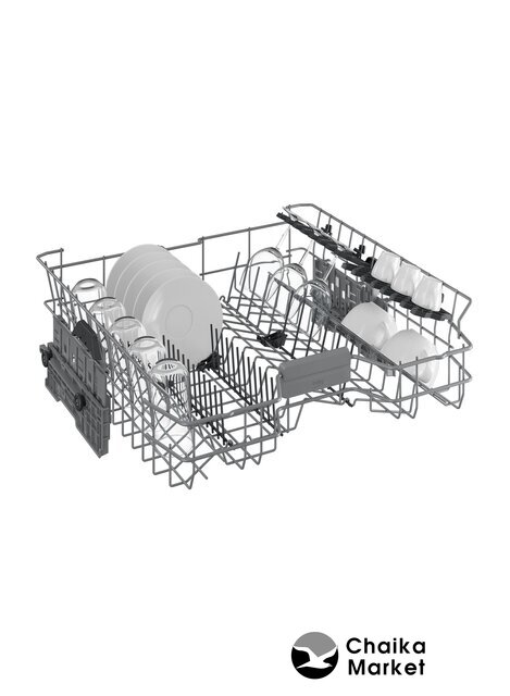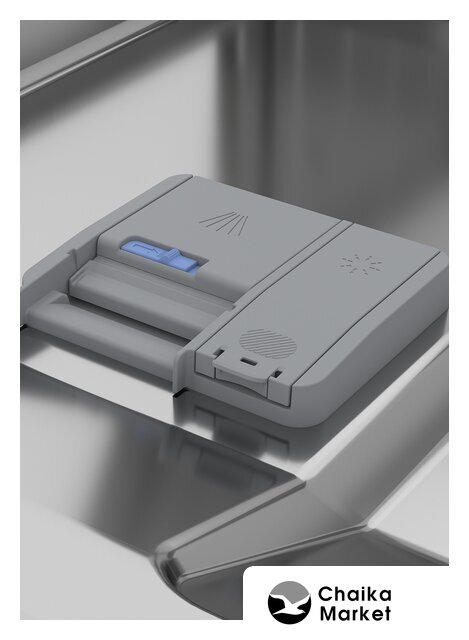 загрузка на 10 комплектов посуды, электронное управление, 7 программ, 44.8x55x82 см, серебристый цвет, сушка: стандартная (конденсация)/с открыванием дверцы, индикация на полу: луч