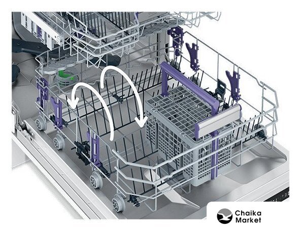 | Особенности верхней корзины | регулировка положения по высоте, складывающиеся держатели |