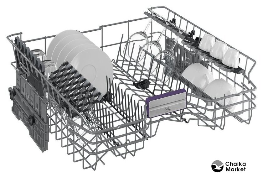 Особенности верхней корзины | регулировка положения по высоте, держатели для бокалов |