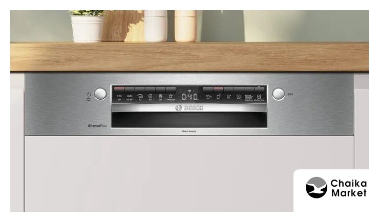 | Дополнительные опции | сокращение времени мойки, дополнительная сушка, половинная загрузка (экономия воды), программа самоочистки |